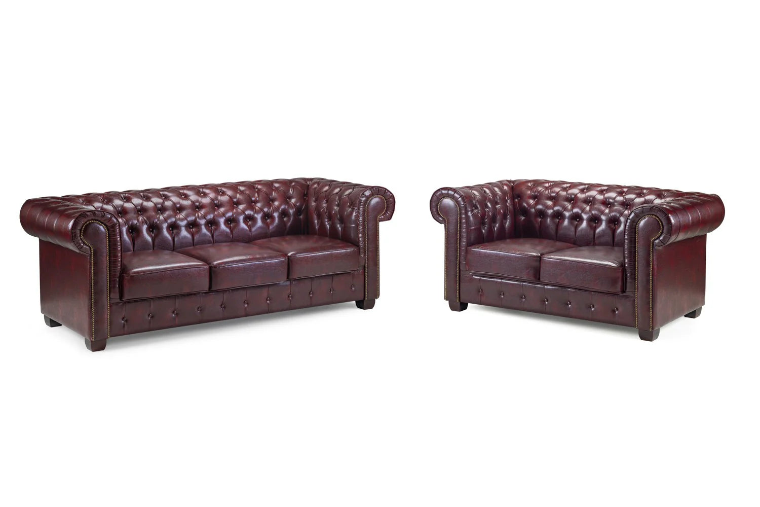 Chesterfield Sofa Set 3+2 Brown & Oxblood
