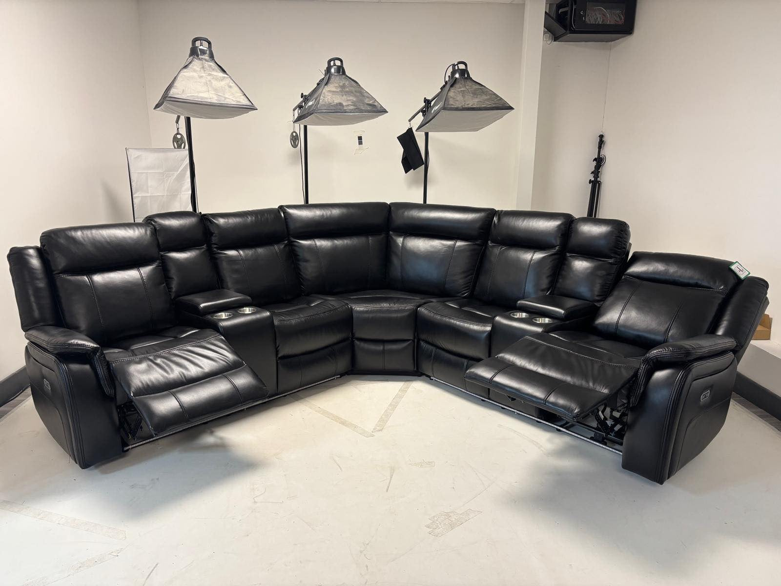 Upgrade your living space with our premium reclining corner sofa, designed for ultimate comfort and style. Upholstered in high-quality, soft-touch air leather, this spacious sectional features plush cushioning and built-in recliners for the perfect lounging experience. The integrated cup holders and center storage consoles add convenience, while the ambient LED lighting underneath creates a modern, cinematic atmosphere. Whether you’re relaxing with family or hosting guests, this sofa delivers both sophistication and functionality.