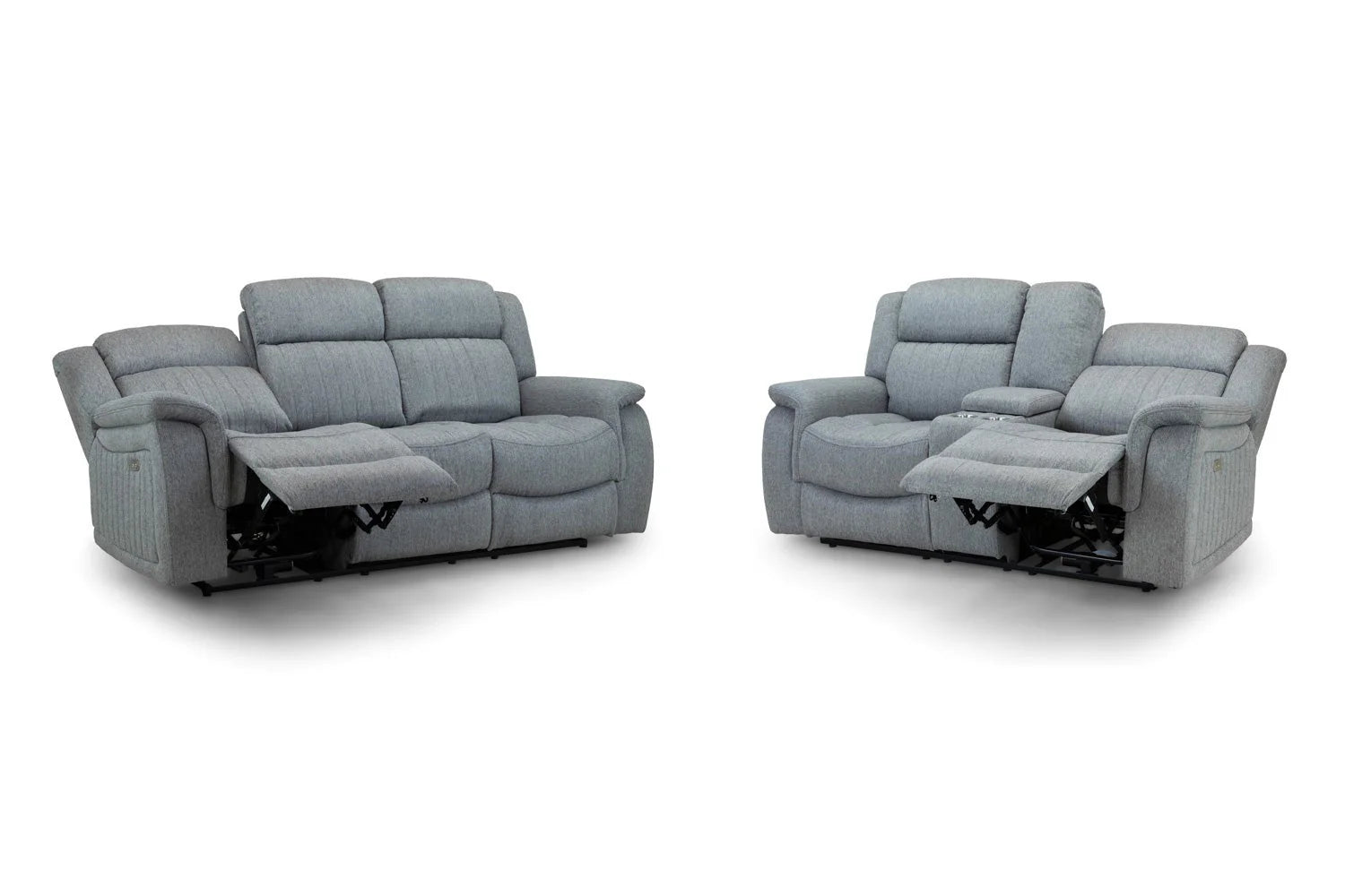Relax in spacious comfort! The Linden large grey electric recliner sofa invites everyone to unwind. With plush fabric, pillow-top armrests, and smooth electric reclining, every seat becomes a cozy retreat.